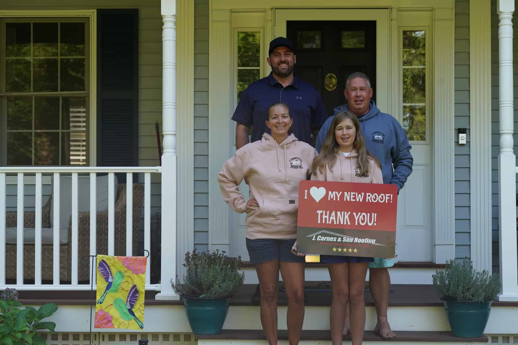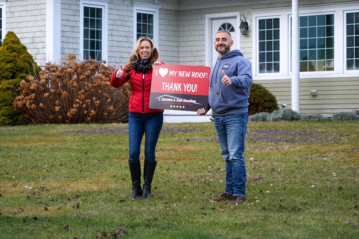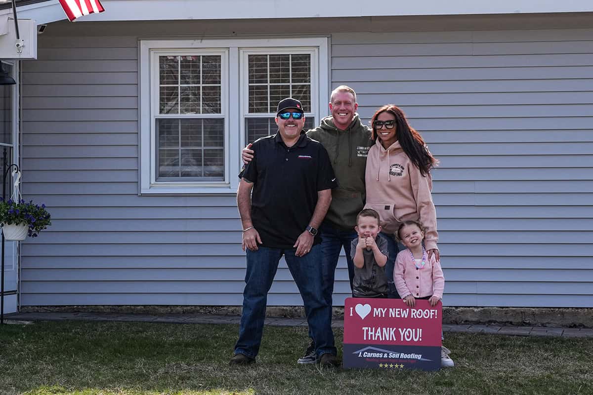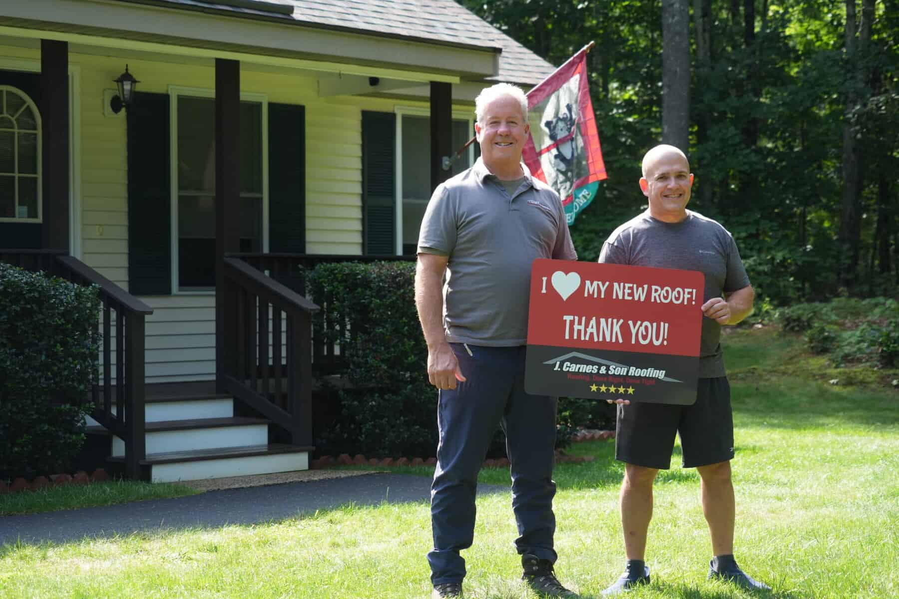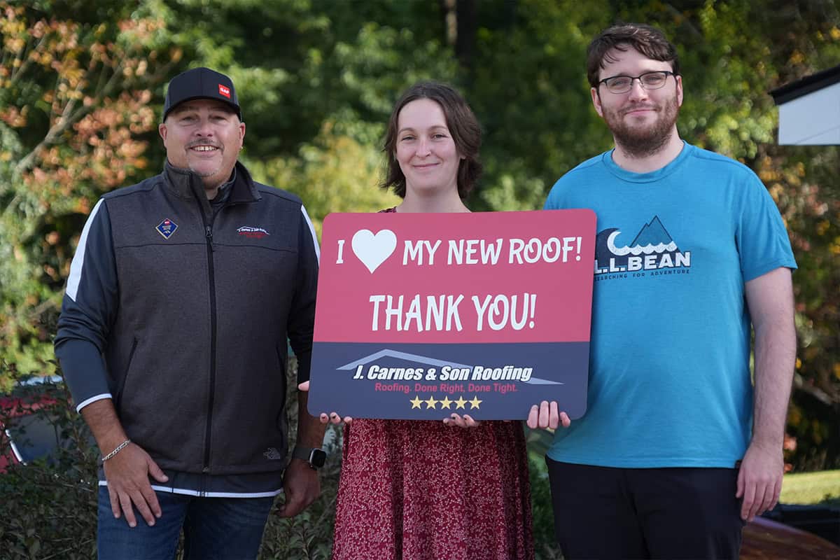 At J. Carnes & Son Roofing, we take pride in delivering top-quality roofing solutions that leave our customers smiling. That’s why we created the “I Love My New Roof™” campaign, a special initiative that showcases the joy and satisfaction of homeowners who have chosen J. Carnes & Son Roofing for their roofing needs. When you work with us, not only do you get a durable and beautiful new roof, but you also become part of our growing family of happy customers. We love to feature our clients proudly holding their “I Love My New Roof™” sign in front of their newly installed roof. It’s our way of saying thank you for trusting J. Carnes & Son Roofing.