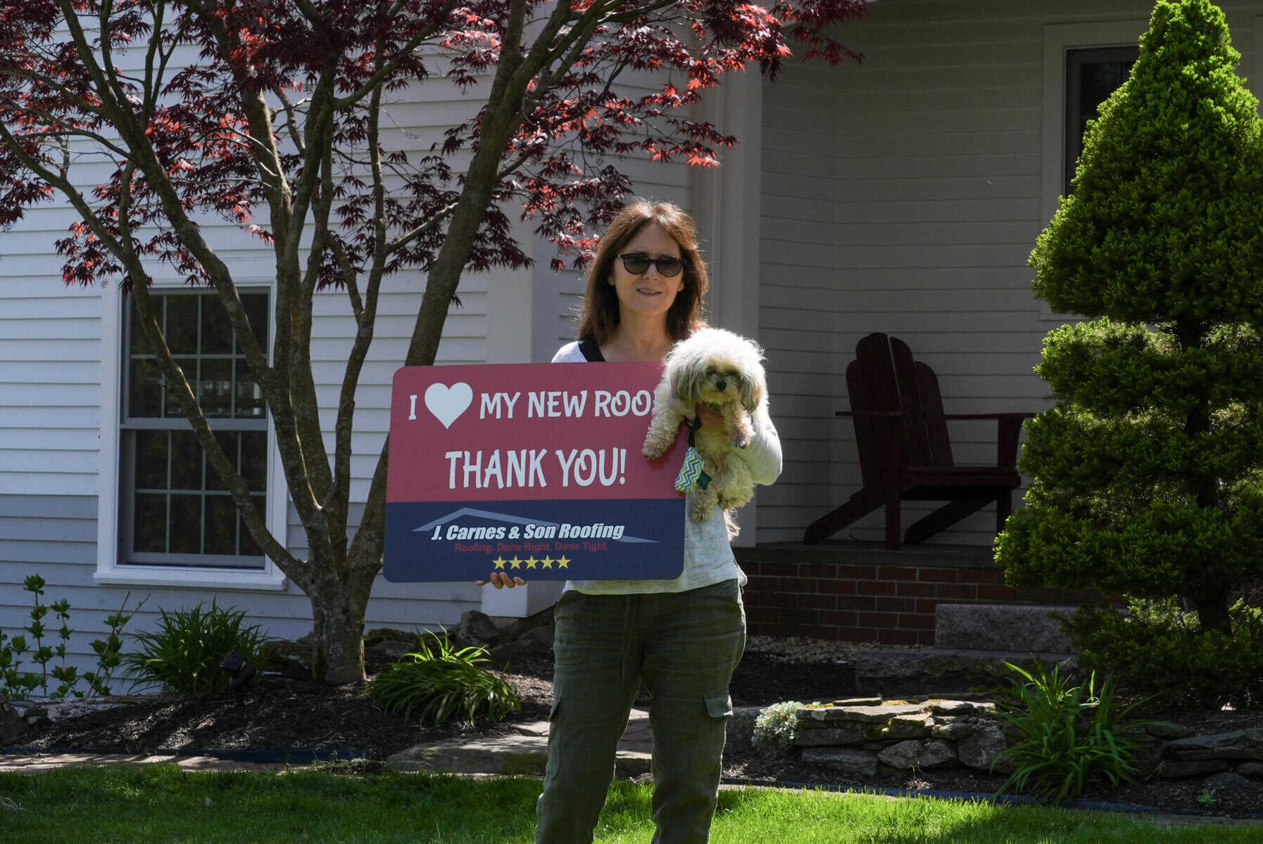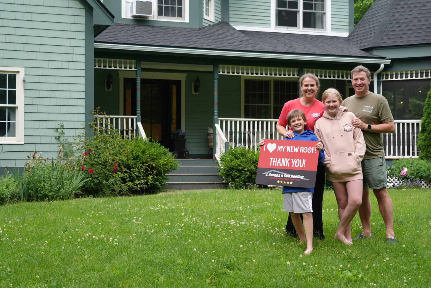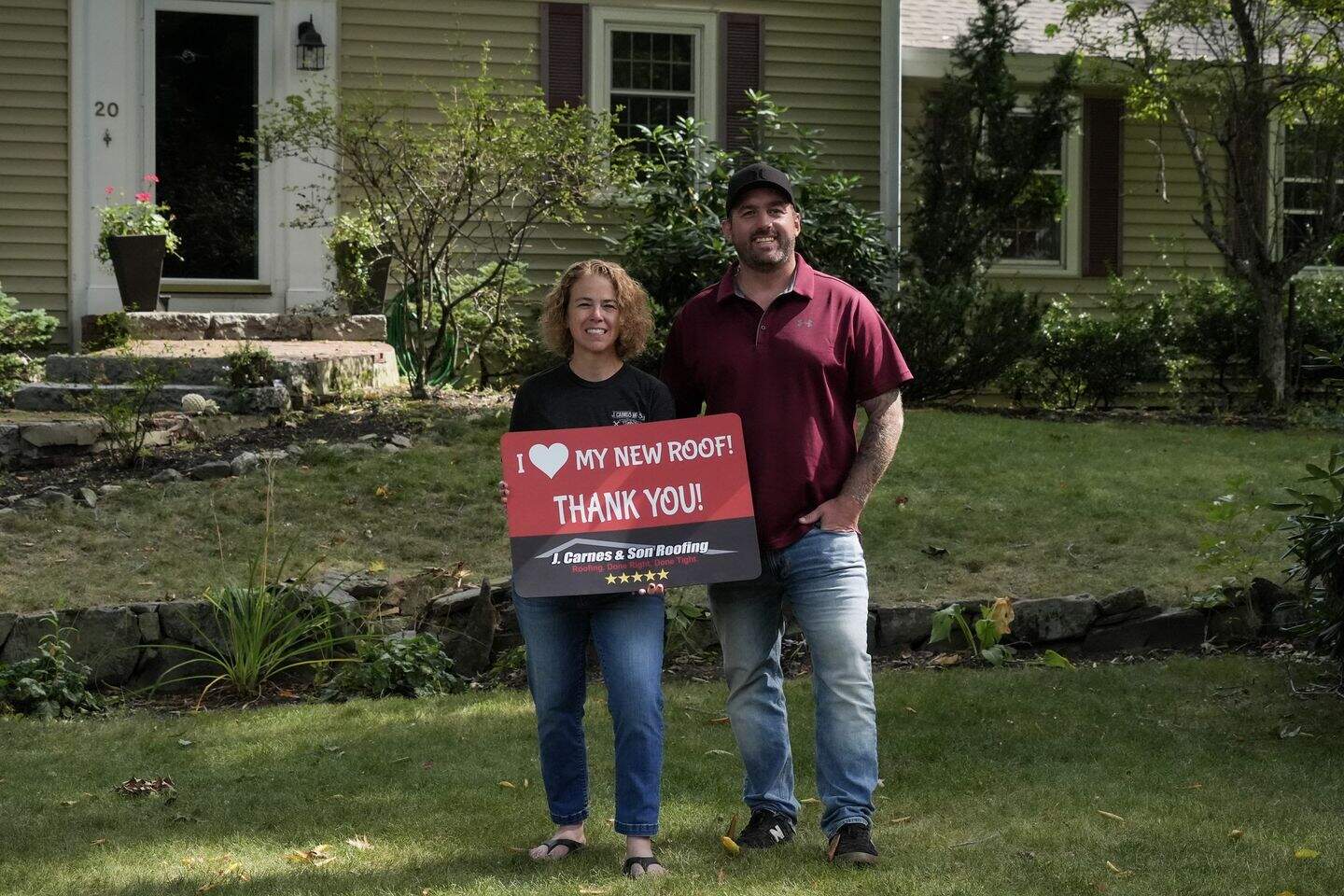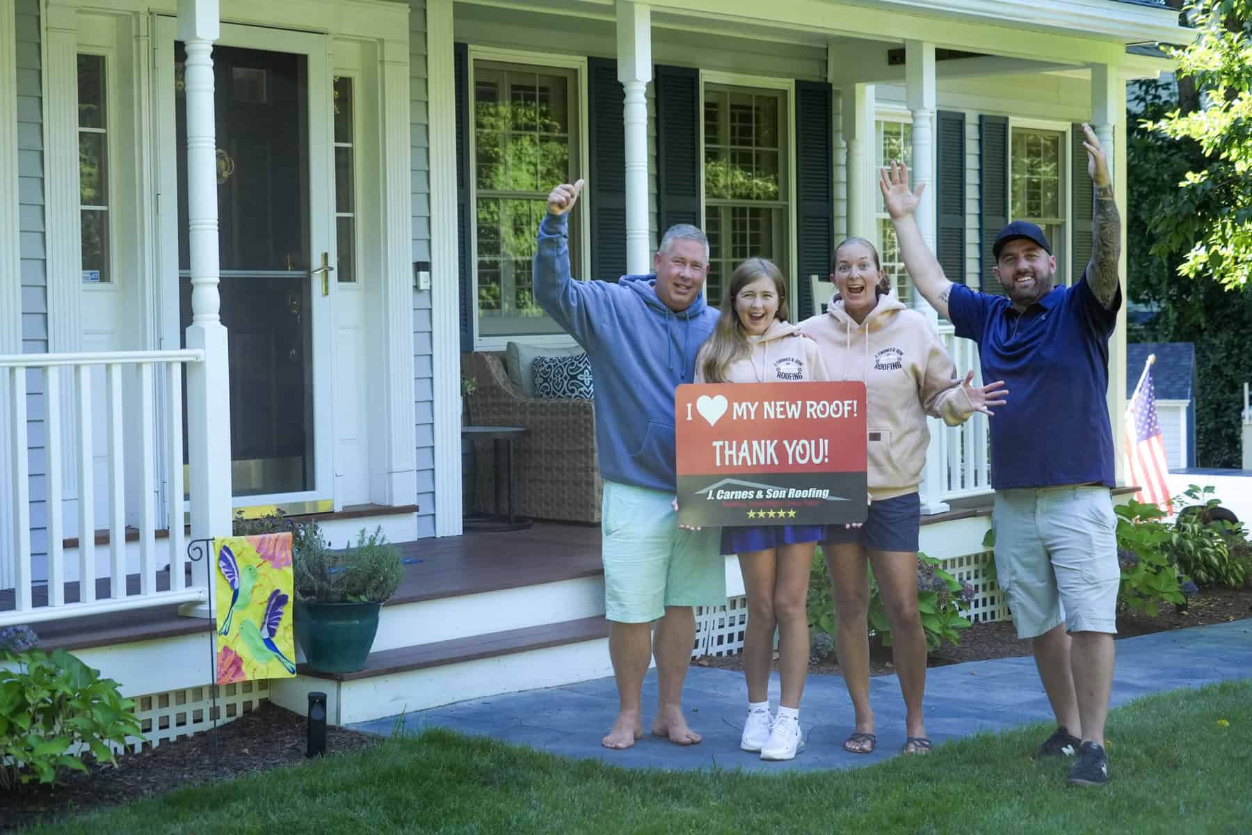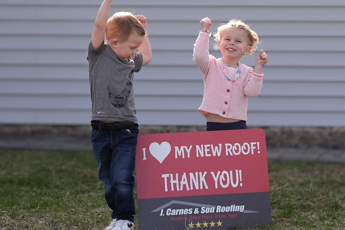 At J. Carnes & Son Roofing, we take pride in delivering top-quality roofing solutions that leave our customers smiling. That’s why we created the “I Love My New Roof™” campaign, a special initiative that showcases the joy and satisfaction of homeowners who have chosen J. Carnes & Son Roofing for their roofing needs. When you work with us, not only do you get a durable and beautiful new roof, but you also become part of our growing family of happy customers. We love to feature our clients proudly holding their “I Love My New Roof™” sign in front of their newly installed roof. It’s our way of saying thank you for trusting J. Carnes & Son Roofing.